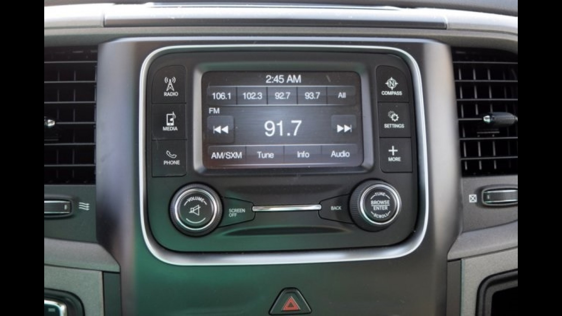 | Other Features: | 17 x 7 Steel Wheels, 4-Wheel Disc Brakes, 40/20/40 Split Bench Seat, 6 Speakers, ABS Brakes, Brake Assist, Delay-off headlights, Driver door bin, Dual front impact airbags, Dual front side impact airbags, Electronic Stability Control, Front Anti-Roll Bar, Front Armrest w/Three Cupholders, Front Center Armrest, Front wheel independent suspension, Fully automatic headlights, Heavy Duty Vinyl 40/20/40 Split Bench Seat, Low Tire Pressure Warning, Military Discounts, Occupant sensing airbag, Overhead airbag, Passenger door bin, Radio data system, Radio: Uconnect 3.0 AM/FM, Rear step bumper, Tilt Steering Wheel, Tip start, Variably intermittent wipers, voltmeter |