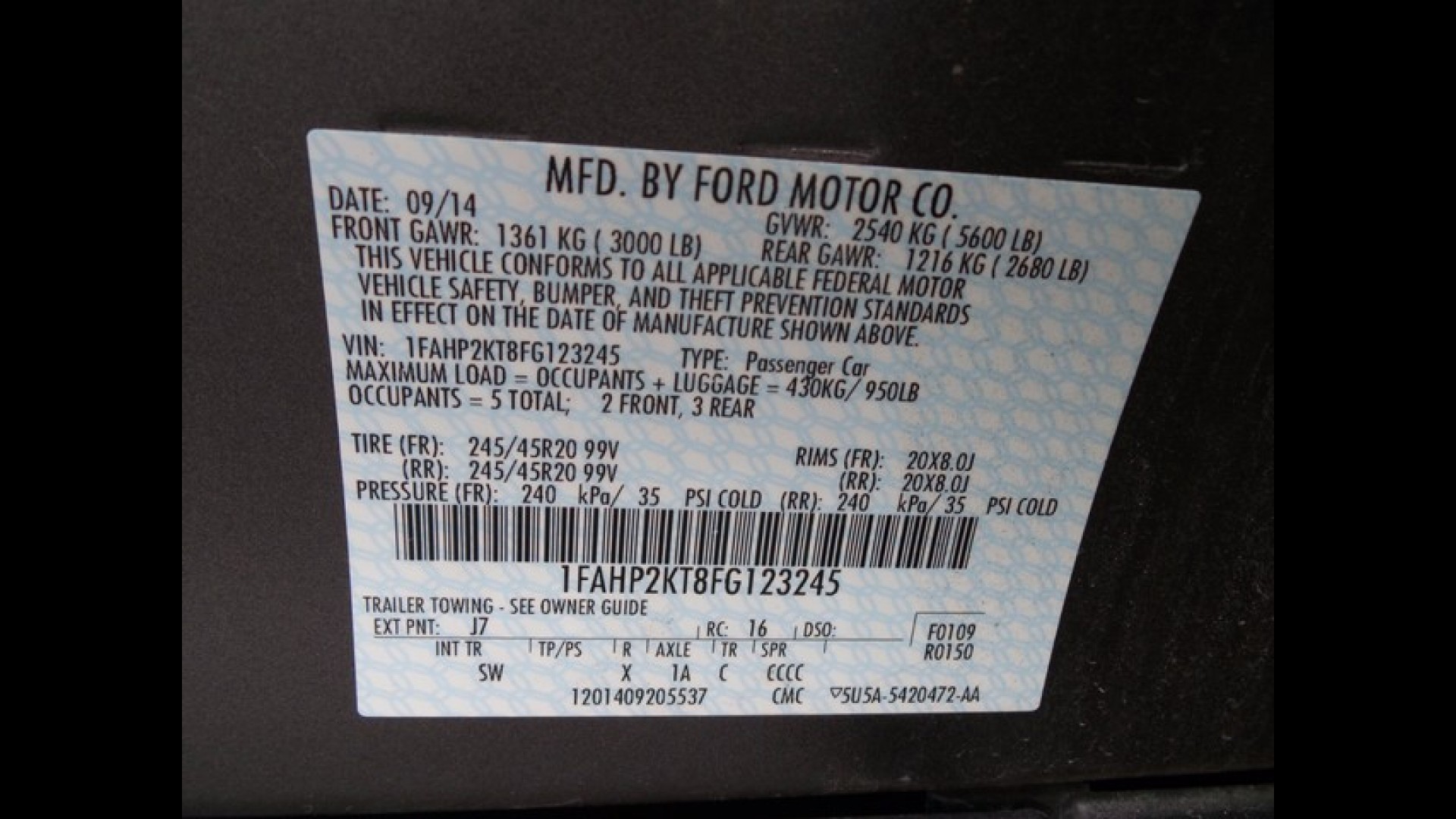 Vin: 1FAHP2KT8FG123245