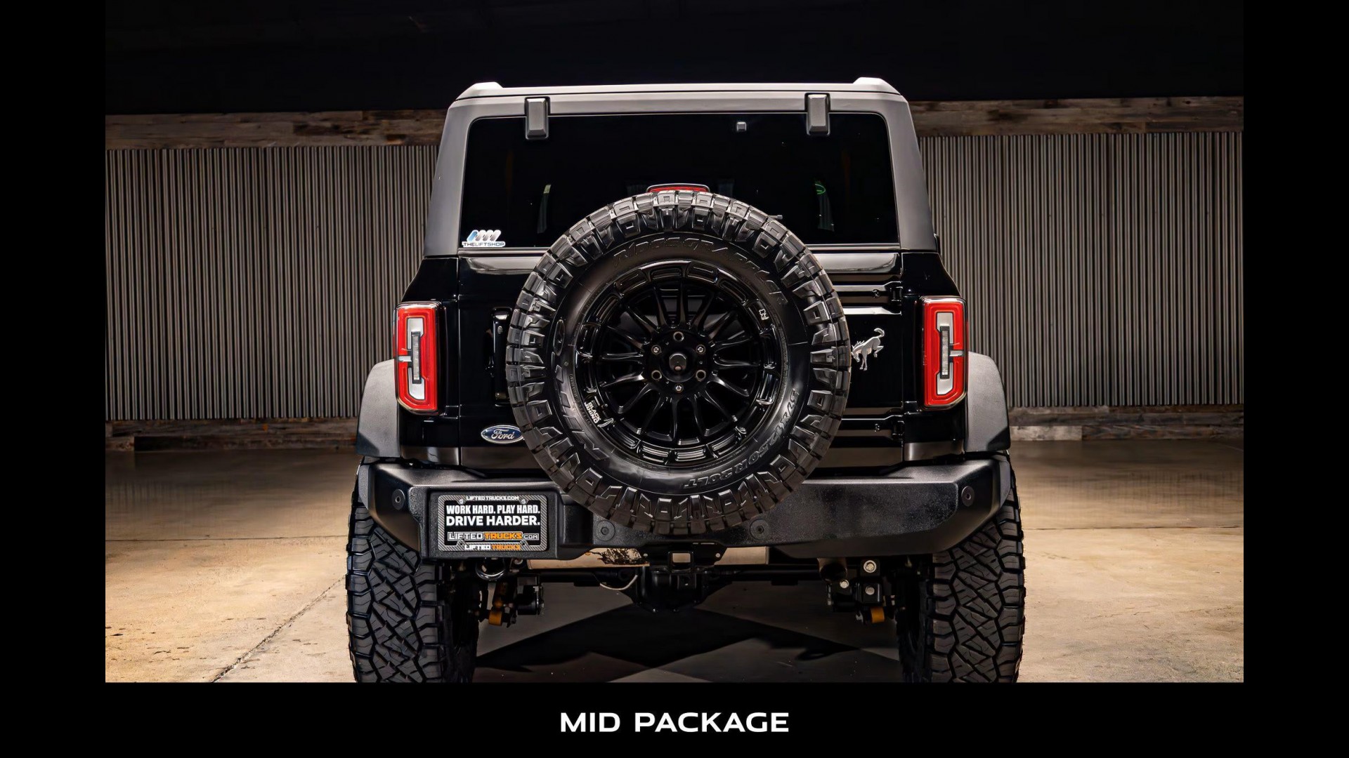 | Exterior: | Aluminum Wheels, Full-Size Spare Tire Mounted Outside Rear, Heated Mirrors, Manual Targa Composite 1st Row Sunroof, Tires: LT315/70R17 Mud-Terrain, Tow Hooks, Variable intermittent wipers |
